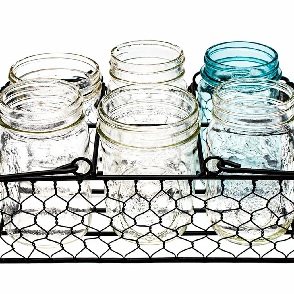 Fits Regular and Wide Mouth 16oz Pint Mason Jars. It would be great in a bathroom for a soap and lotion dispenser, plus a toothbrush holder. Store forks, spoons, and knives in separate jars for a flatware caddy. Add frog lids and put different flowers in each jar. Make a desk organizer to hold pens, pencils, scissors, etc. Use it in the kitchen to hold your salt, pepper, and garlic powder jars.