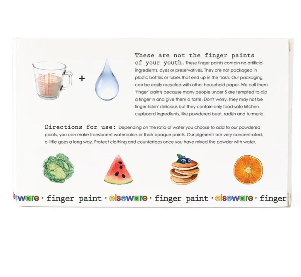 Elsewares finger paint is food safe, non-GMO ingredients (including potatoes, rice and beans) provide an all-natural, fun-filled and colorful adventure for the very youngest artist.