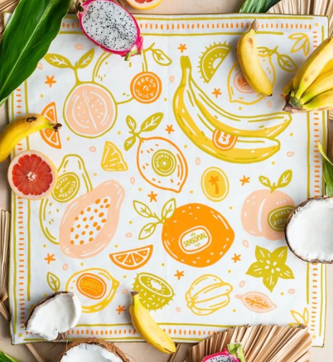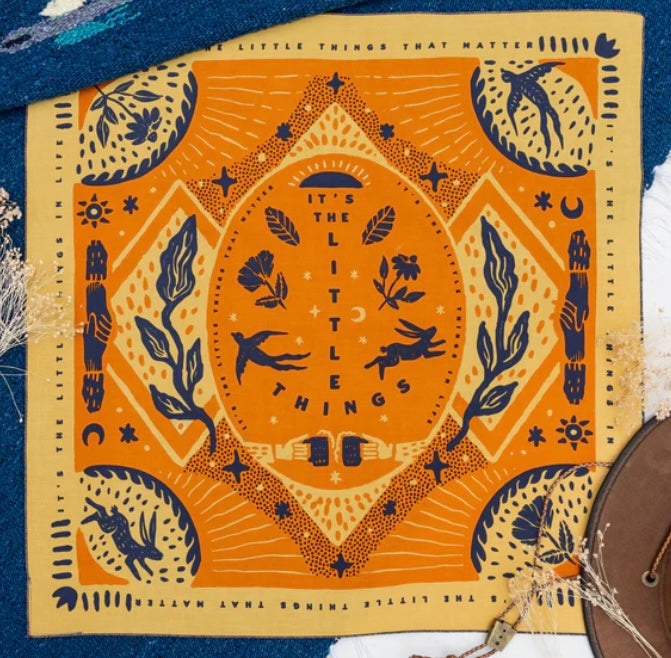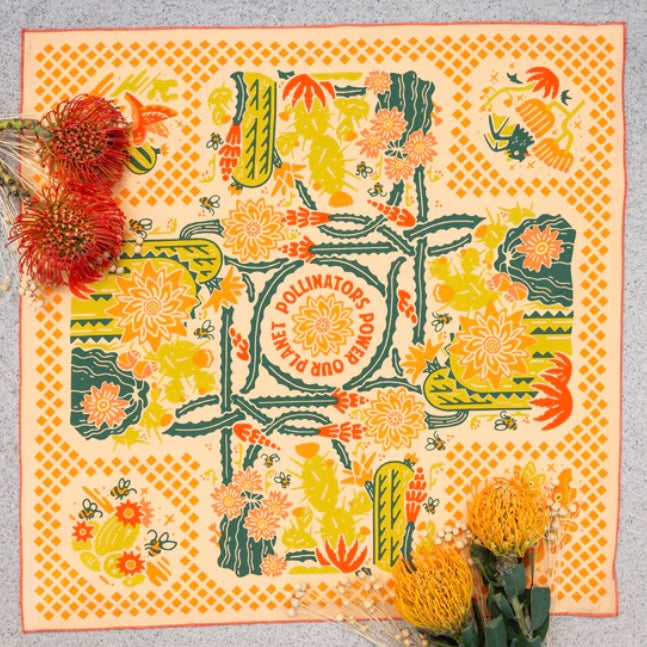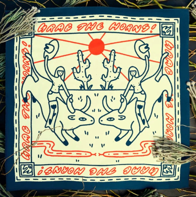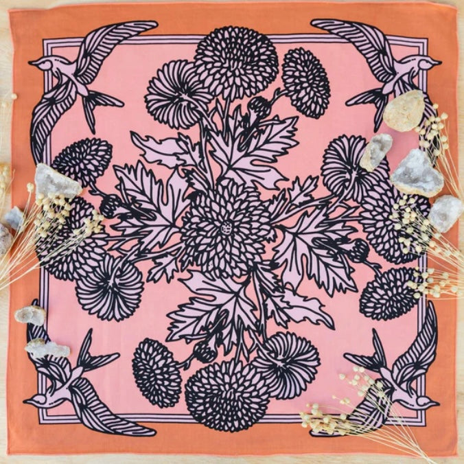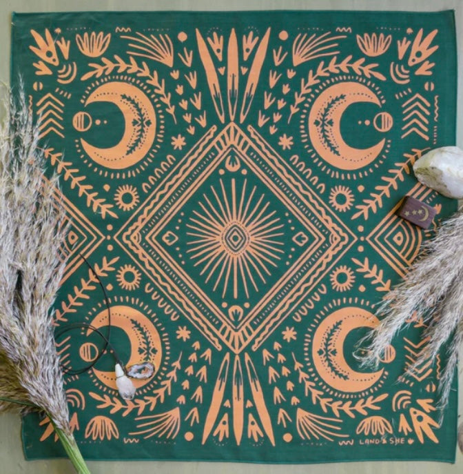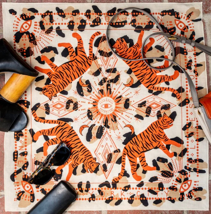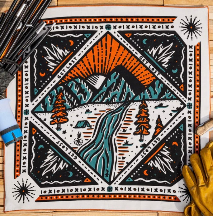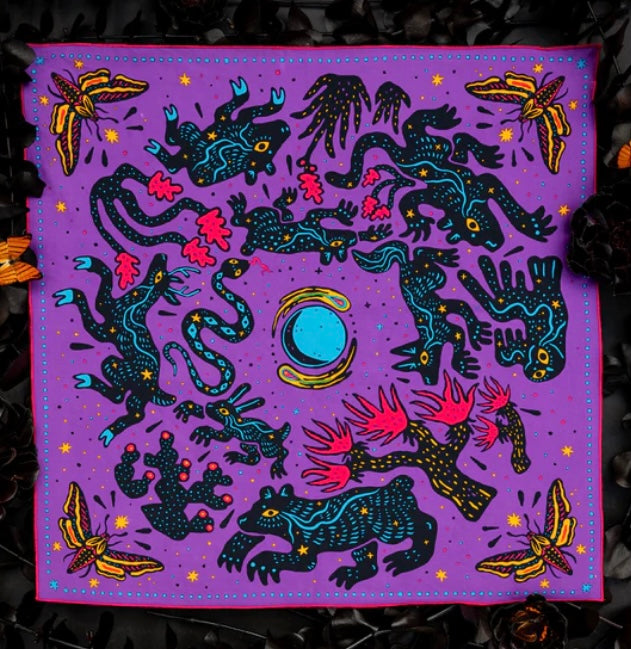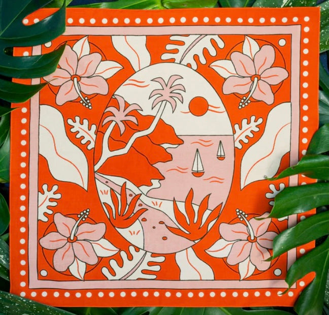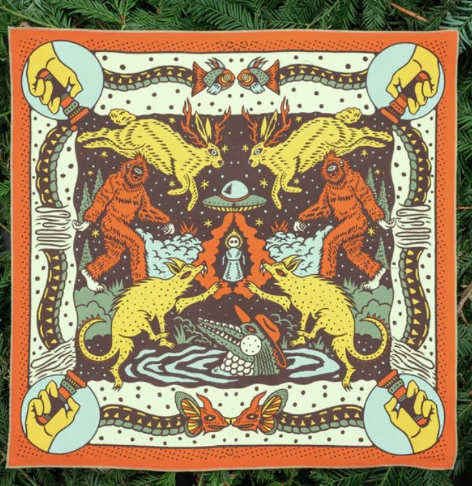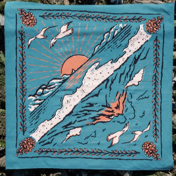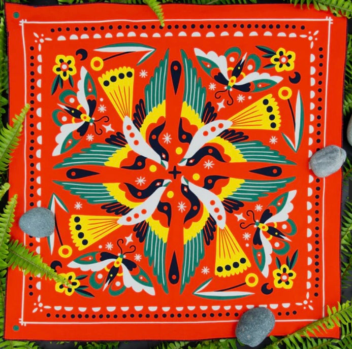 Standard 21 x 21 inch bandana. Machine wash cold with like colors, line or tumble dry, warm iron, do not bleach