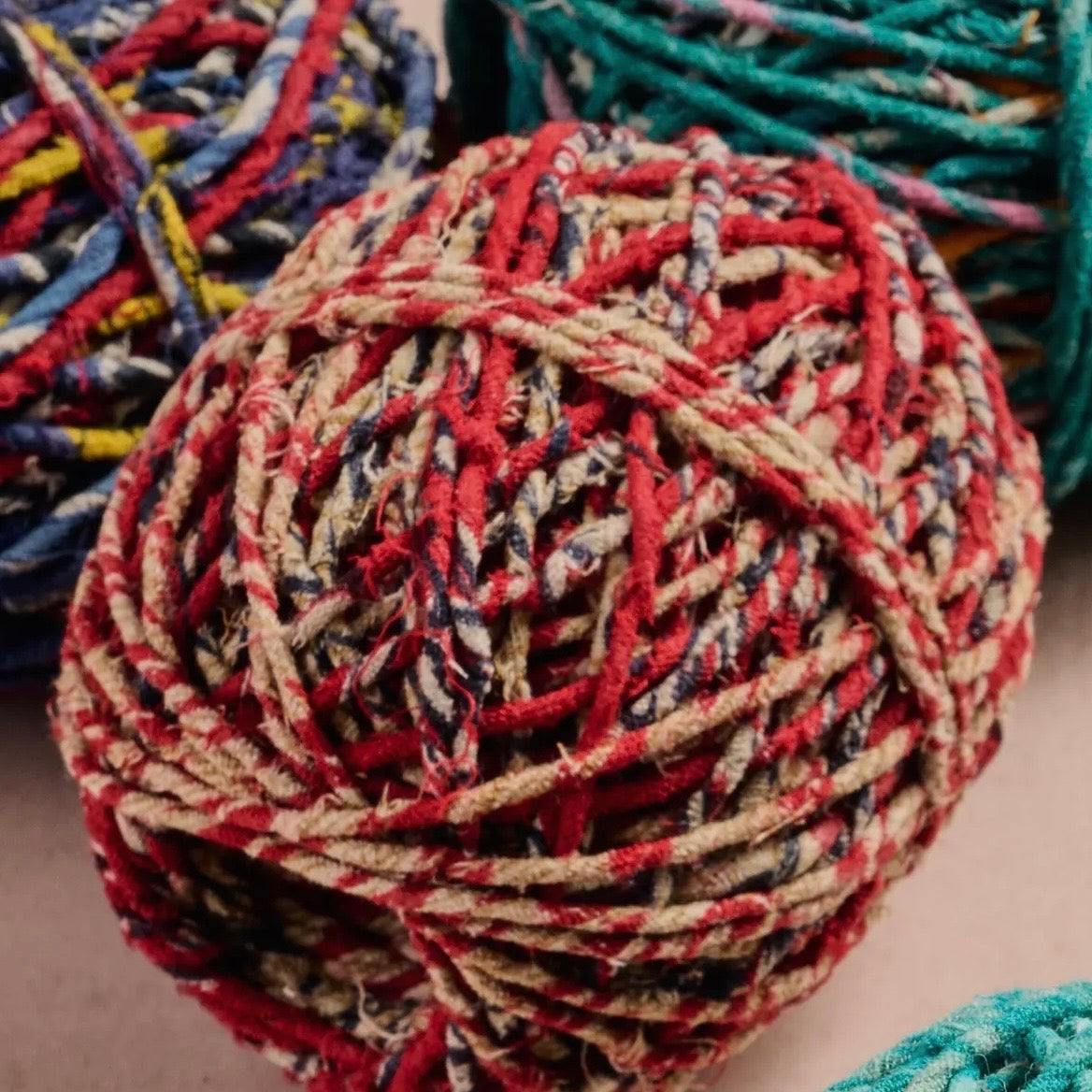 Add a pop of color and purpose to your creative projects with these vibrant twine balls. Crafted from 100% recycled cotton sari fabric. Each 25 foot ball is a unique blend of hues and patterns meaning no two are alike. Exclusively handcrafted in Bangladesh.